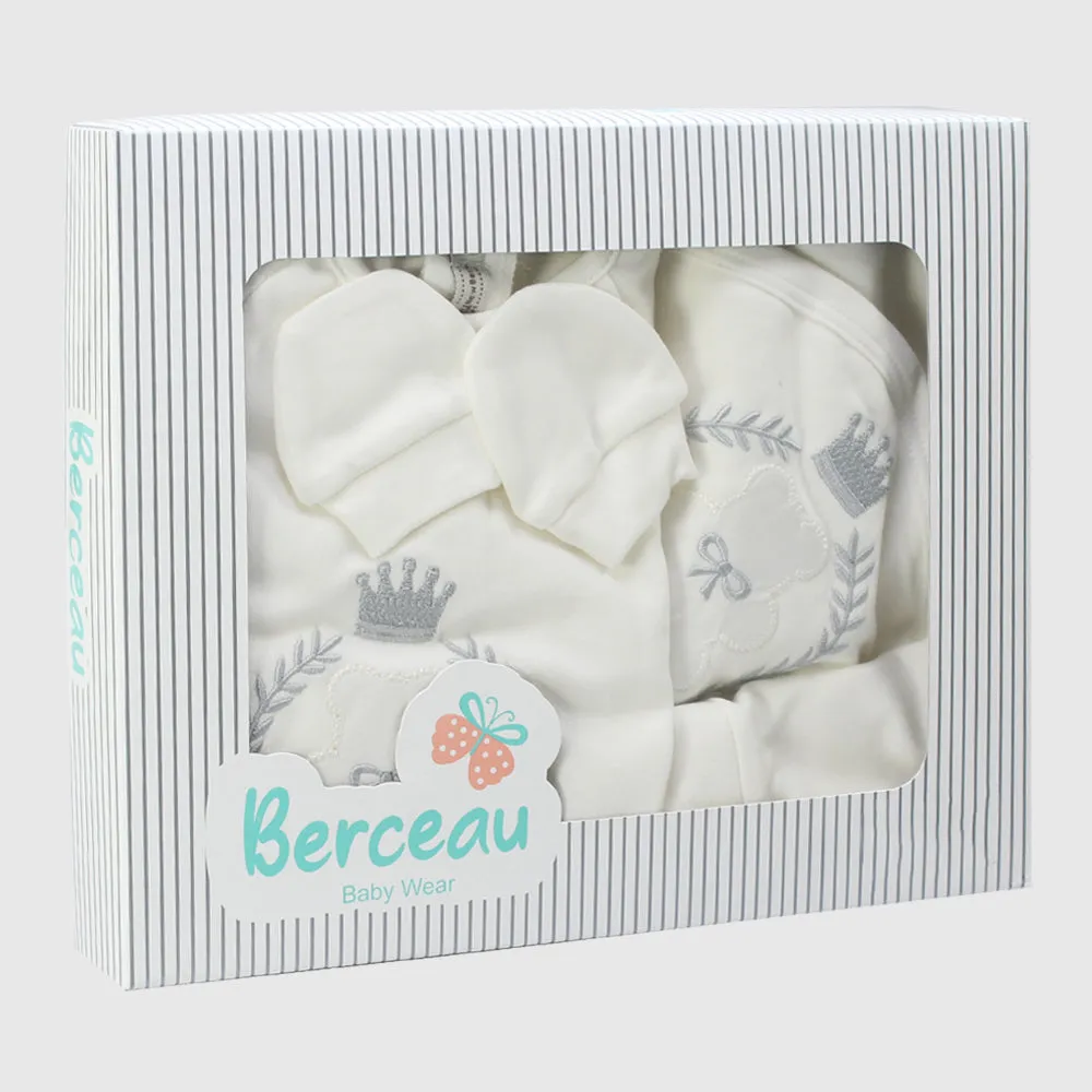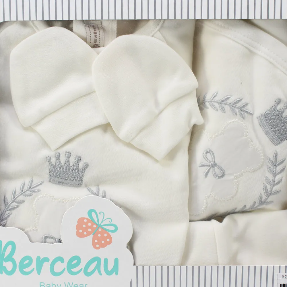 What sets this layette set apart is its high-quality construction and attention to detail. Each piece is carefully crafted to ensure maximum comfort for your baby. The soft fabric is gentle on your baby's delicate skin, making it perfect for everyday wear. The white color also makes it easy to mix and match with other pieces in your baby's wardrobe.