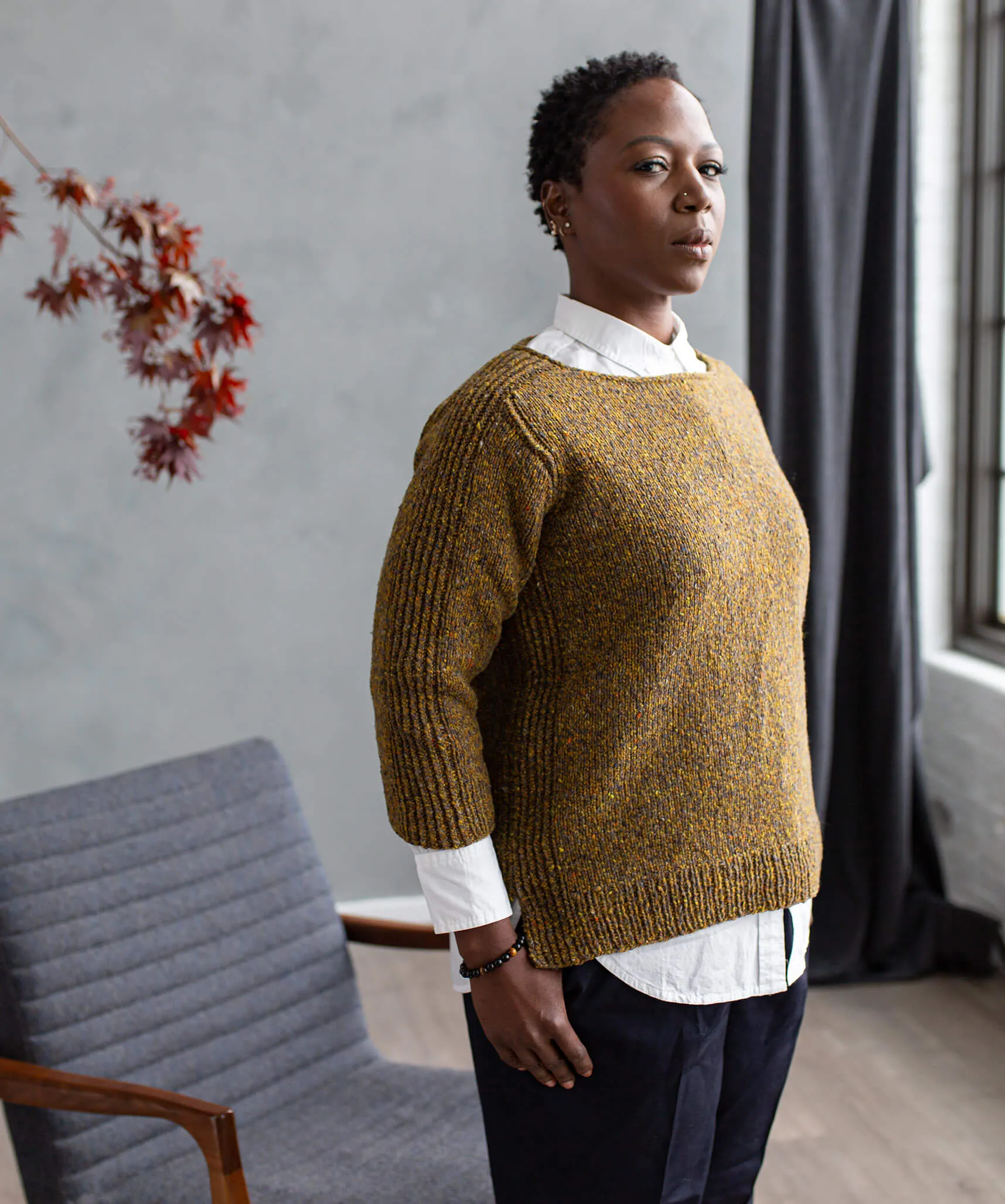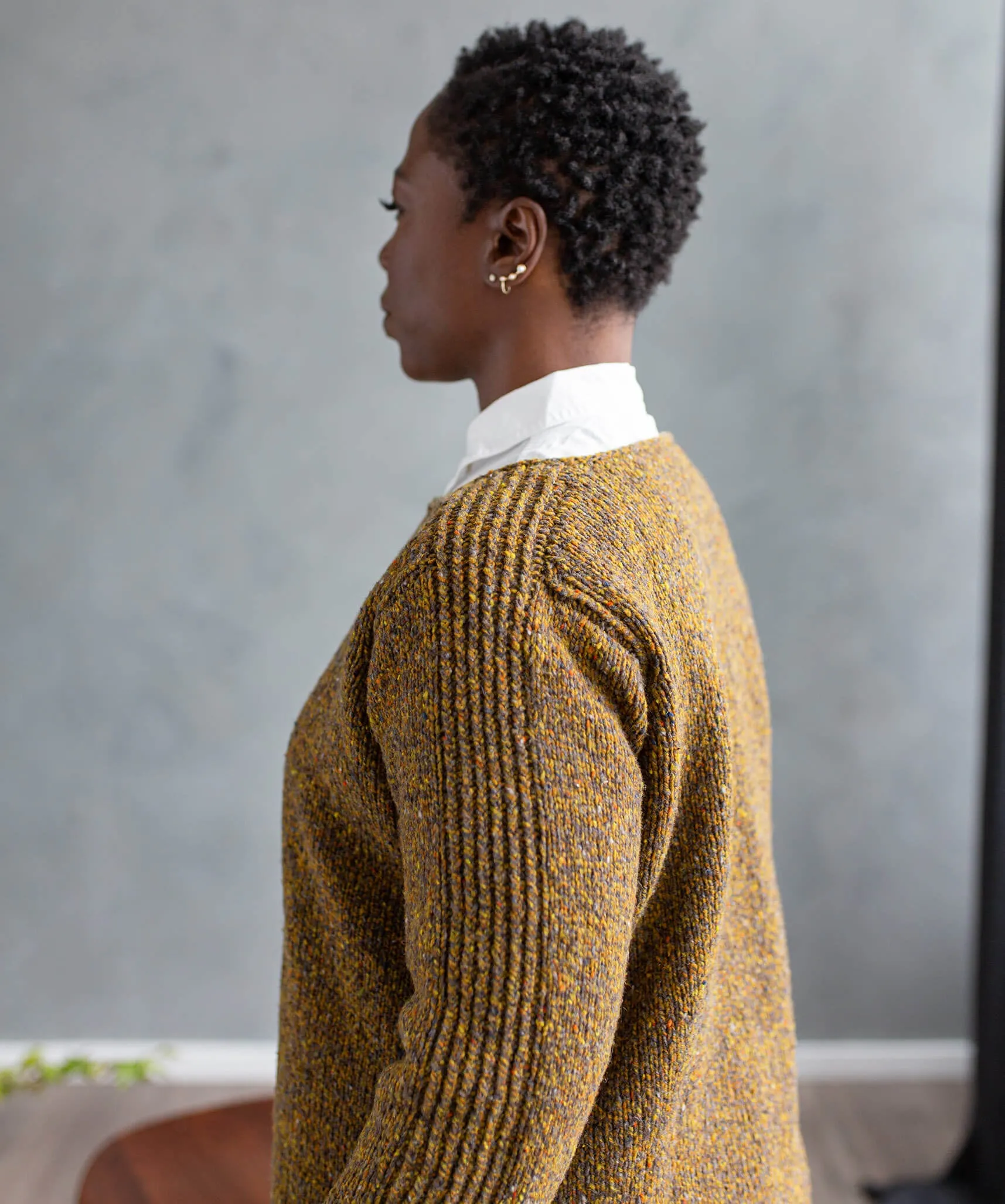Trace a line from past to future and see where this comfortable classic takes you. Keisling is the sweater for every body. The one you borrow from your partner, reachfor on rainy days and throw over your kiddo during sleepy autumn evenings. Finely shaped saddle shoulders and linear side panels add polished tailoring to this wardrobe staple, with instructions for customizable sleeve and body lengths. From season to season, Keisling’s easy shape and plush Shelter fabric will remain an enveloping hug that always feels like home.