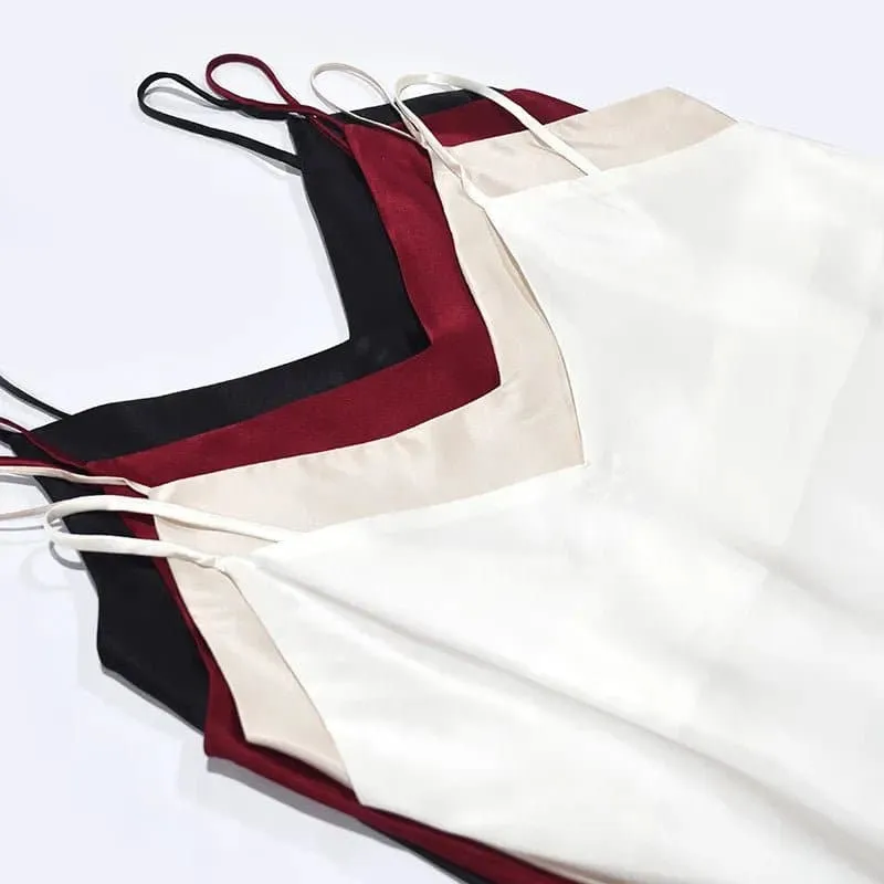 Made from 100% pure silk, these pajamas are not only incredibly soft and smooth, but also lightweight and breathable. The V-neck collar adds a touch of elegance, while the sleeveless design ensures maximum freedom of movement.